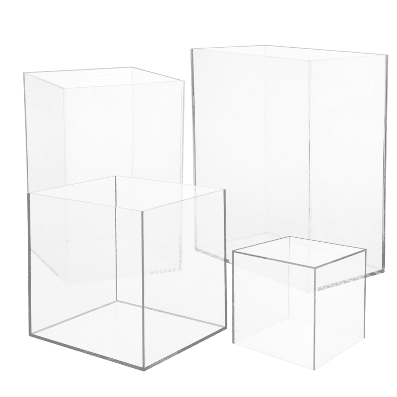 Şeffaf akrilik kutunuzu kapaklı veya kapaksız sipariş edin ve perakende alanınız için özel şeffaf akrilik kutu yapalım. Ayrıca şeffaf akrilik bir kasa, kutular veya her ikisinin bir kombinasyonunu kullanarak benzersiz bir alan tasarlamanıza yardımcı olabiliriz. Ürünler için farklı yükseklikler oluşturmak için kutuları ve kutuları istifleyebilir ve ürün hatlarınızı en iyi şekilde gösteren doğru şeffaf teşhir sahnesini oluşturmanıza yardımcı olmak için çeşitli boyutlarda ve farklı konumlarda kasaları kullanabilirsiniz.