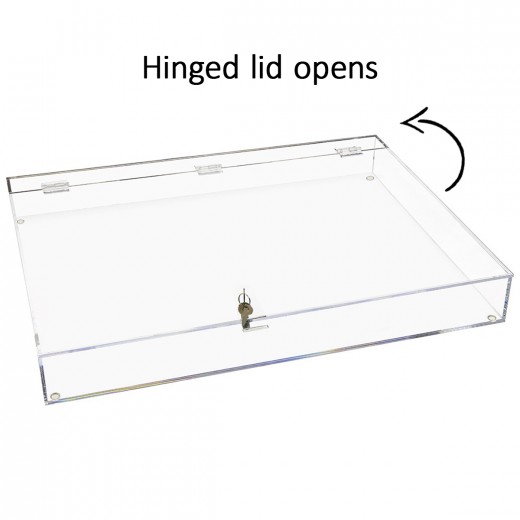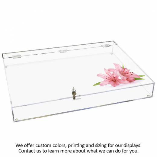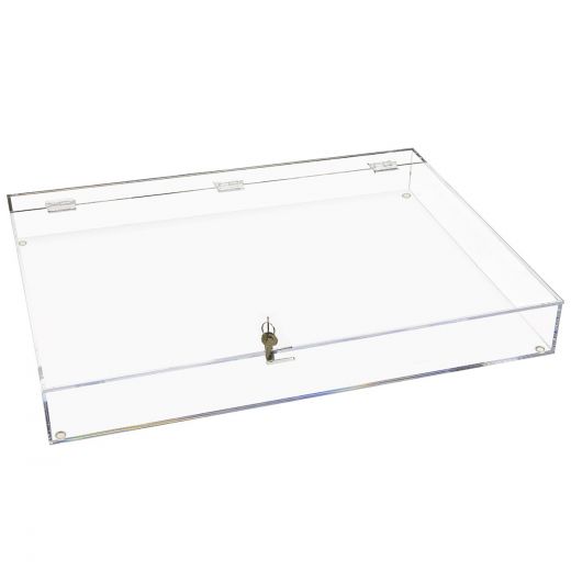 Ürünlerinizin ve değerli eşyalarınızın düzenini özelleştirme olanağı sağlayan düz kilitli vitrin. Kilitli üstten menteşeli kapağı ile müşteriler, içindeki pahalı içerikleri ellemeden görebilir ve hayranlıkla izleyebilir. Ölçümler 24″ inç uzunluğunda, 18″ genişliğinde ve 3″ boyunda, 16″ kapak ve menteşelerin üzerinde 2″ destek şeridi ile.